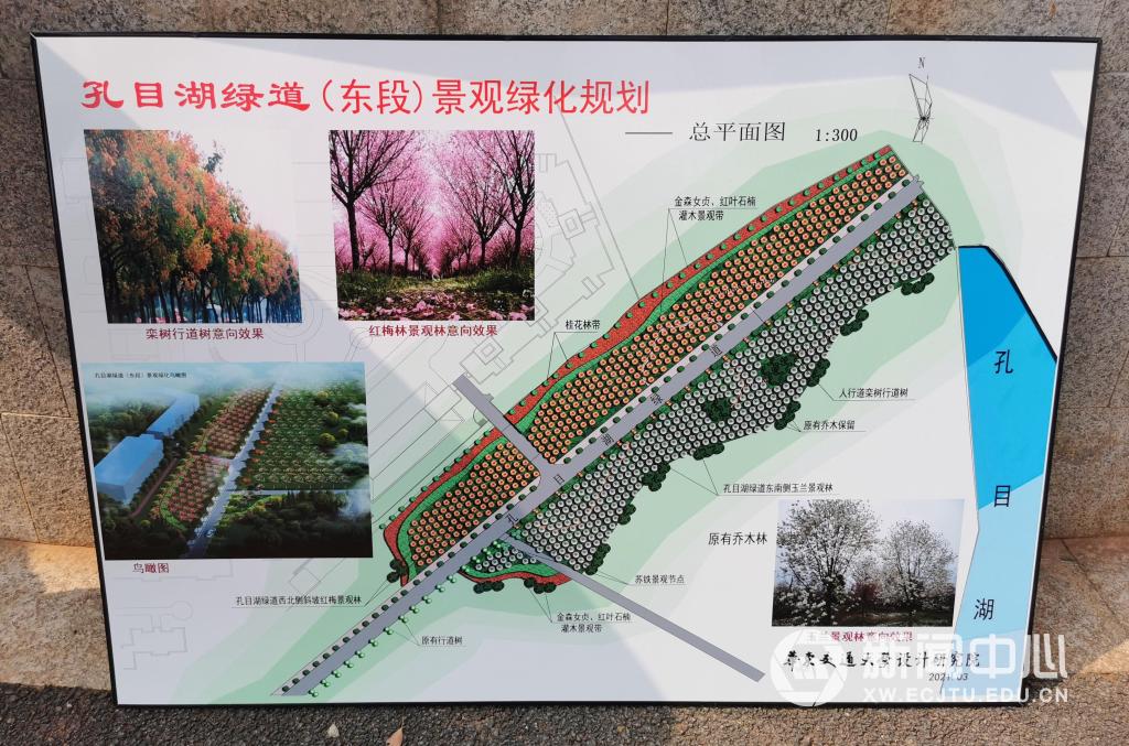 据悉,孔目湖绿道景观规划按照我校“山水校园、人文交大”的建设理念,与孔目湖原生态湿地公园相互融合,坚持成林、成片、成形原则,以孔目湖绿道为中心,绿道东南侧、西北侧分别种植白玉兰、红梅景观林,形成同季开花的红白景观林,既有绿,又有彩,其间建有游园小径,既可观赏,又可休闲游玩。景观林将由领导干部、学生志愿者、优秀校友分批种植。